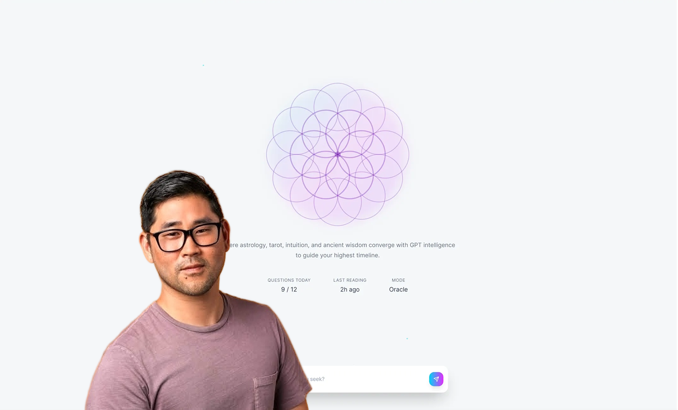 The Great Awakener + MAX Oracle is a dual-platform design system created for a spiritual teacher and content creator, blending sacred geometry with modern UX. Over the course of one week, I designed a 10+ page consciousness ecosystem — eight interconnected pages for The Great Awakener website and a companion MAX Oracle interface that merges mysticism and AI.
